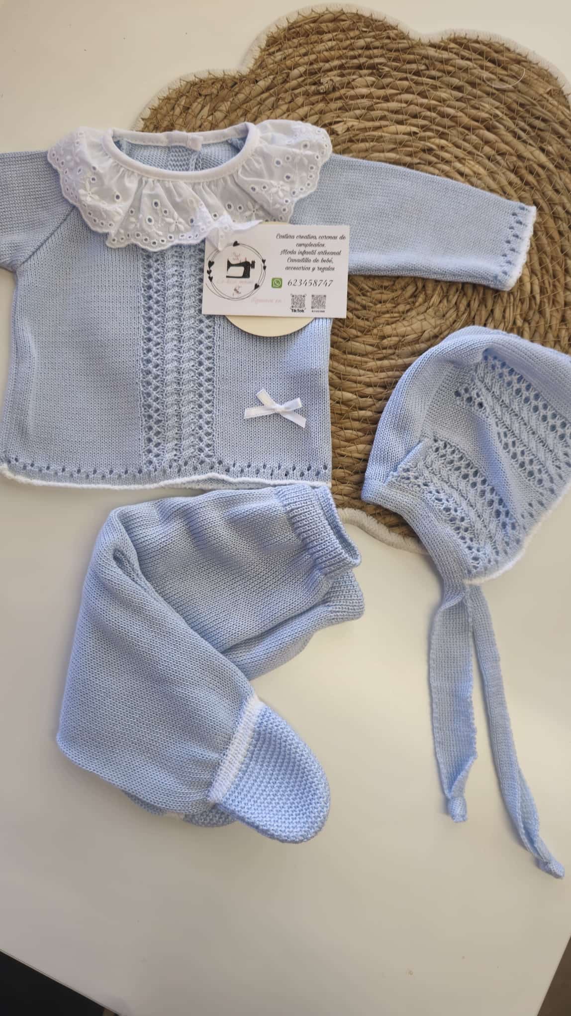Conjunto de primera puesta fabricado en hilo.