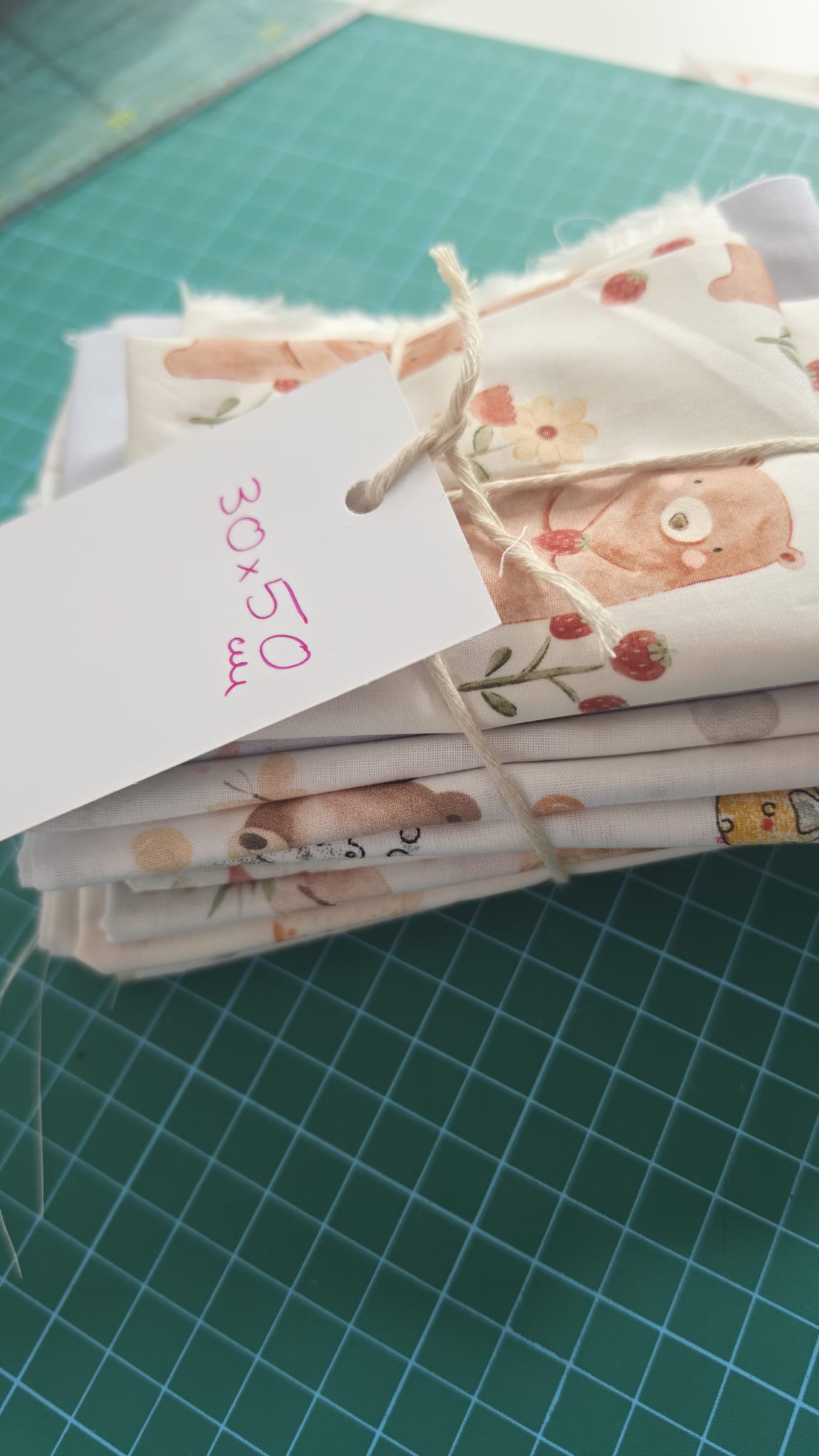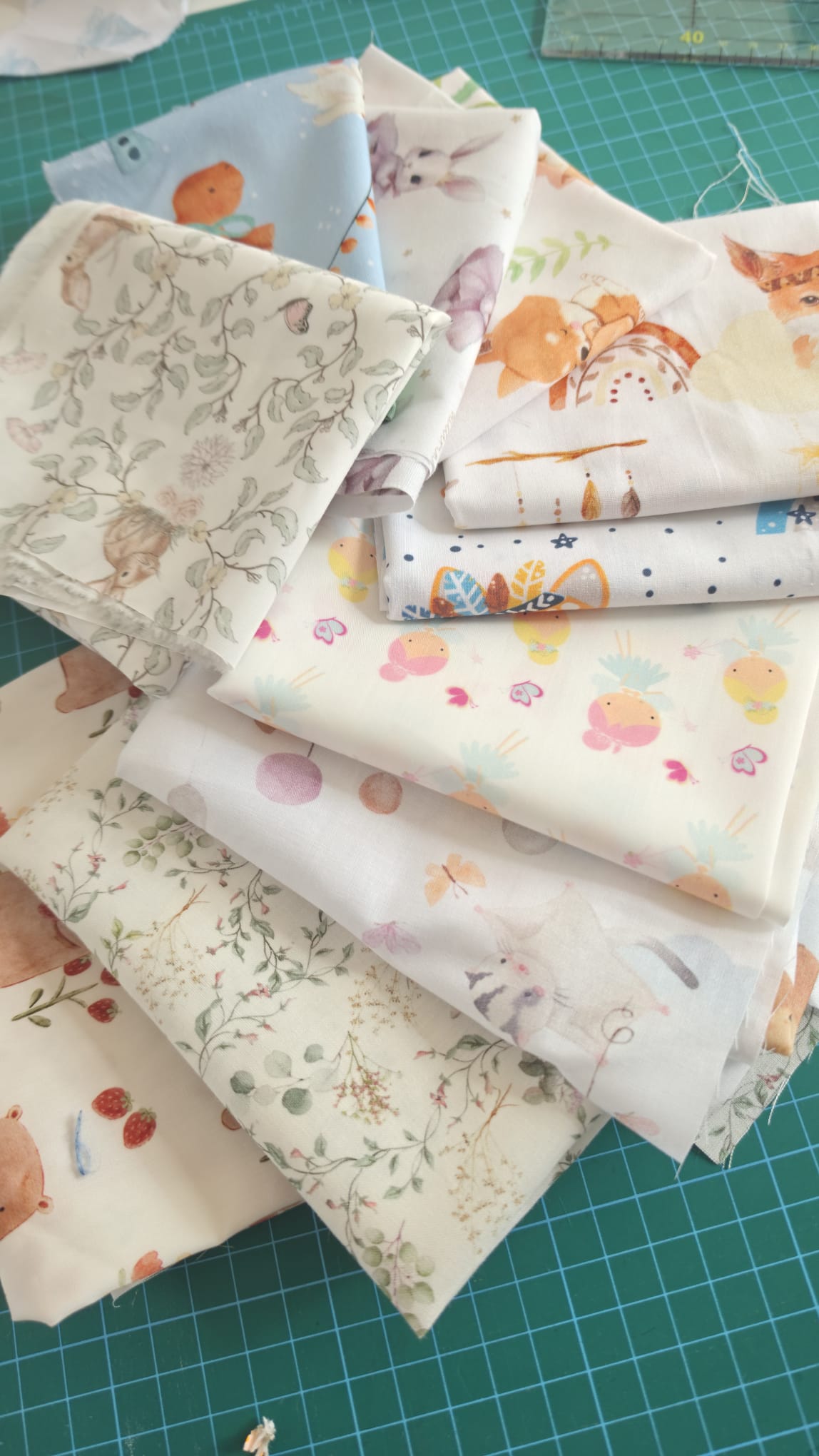 La forma más cómoda de tener variedad de estampados para tus pequeños proyectos de costura como baberos, chupeteros, bolsitas, fundas de libros…sin necesidad de acumular excedentes de retales de tejido.