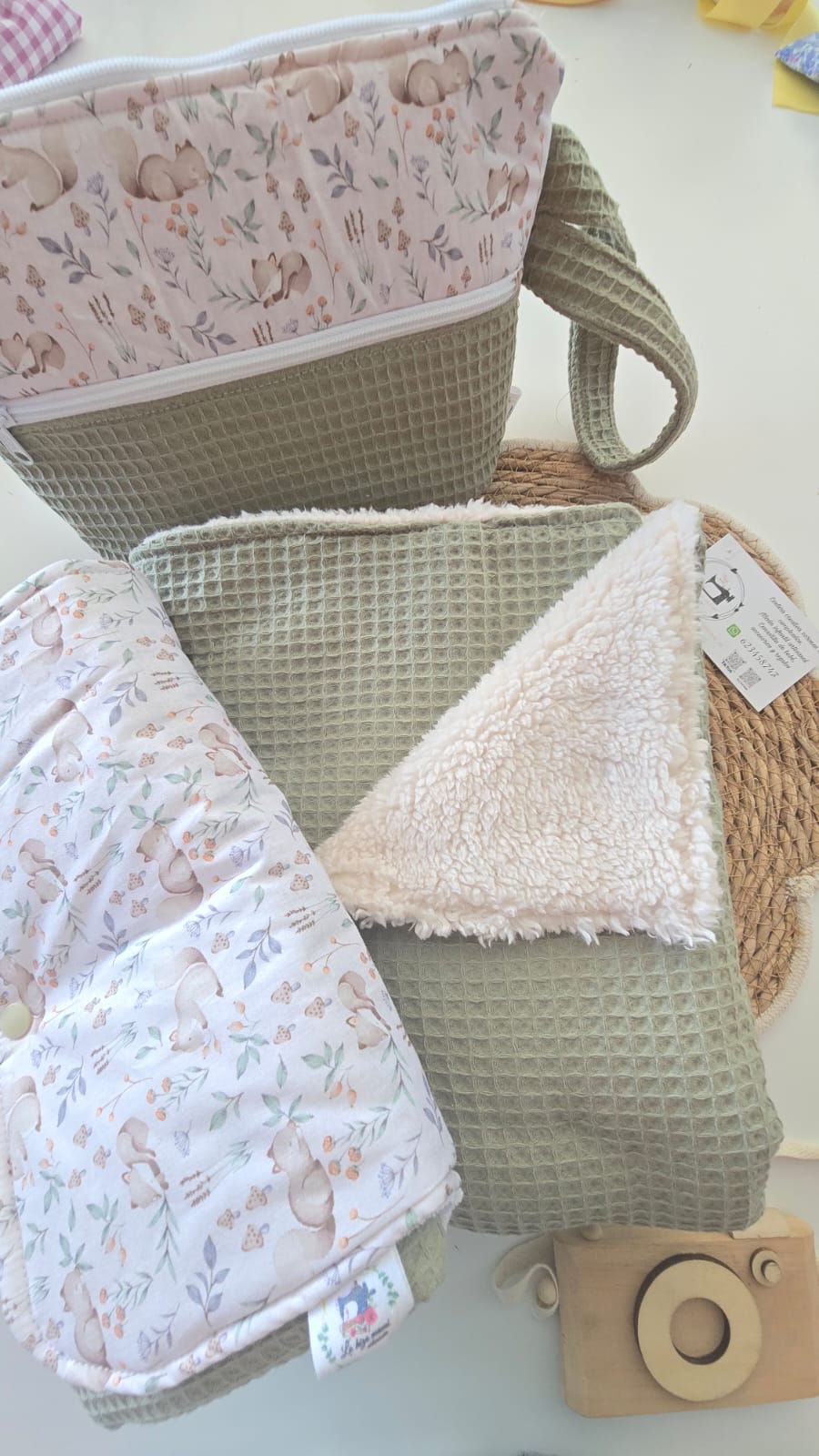 Realizada a mano, esta pañalera forma parte de la canastilla esquío. Es una colección única, limitada a una unidad por producto. No habrá reposición. En productos relacionados podrás encontrar el arrullo y el cambiador para bolso con el mismo estampado.